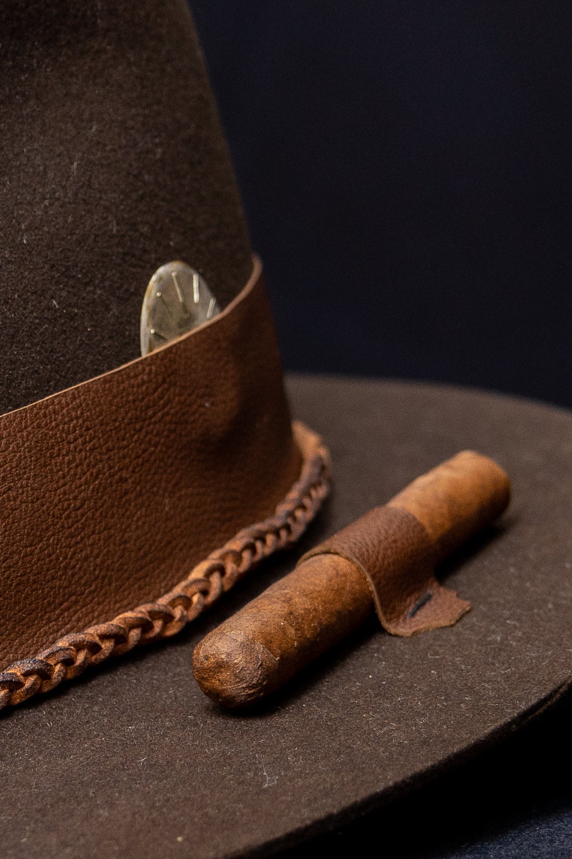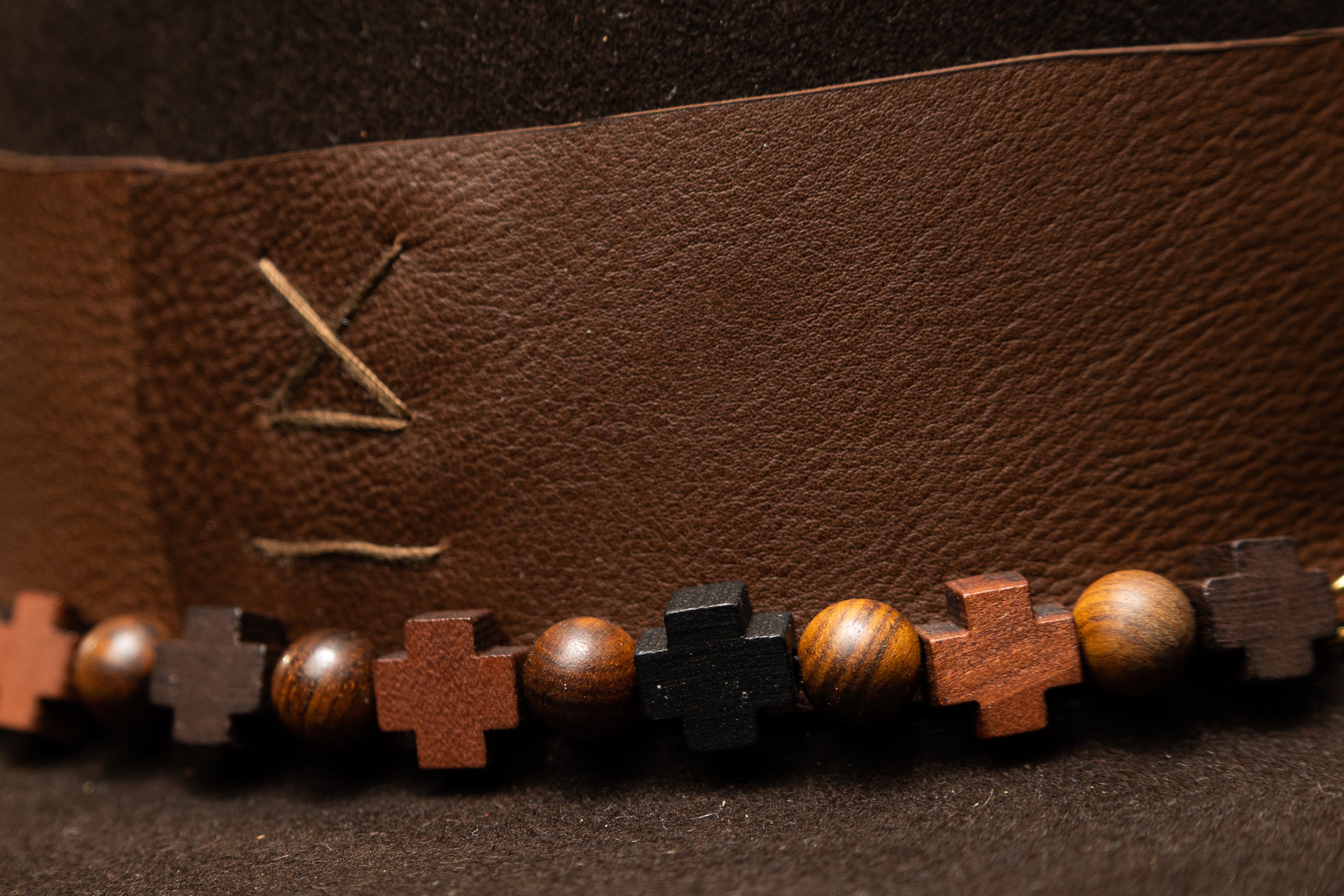 Powerful in faith, honorable and with a big heart, this beaver fur hat is exactly an extension of the owner. The cigar embodies his gentlemanly passions, the Atlantic face - his love for watches and the wooden Cross beads - his Strong Faith that protects him.